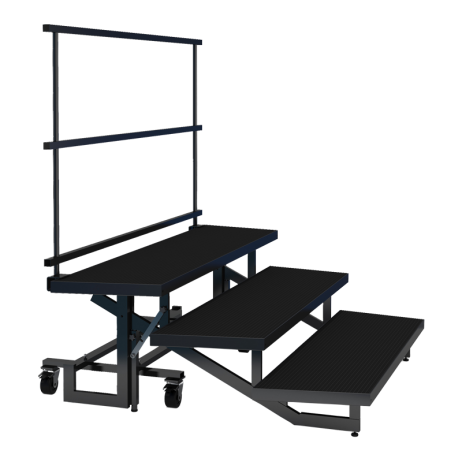 The stage managers mobiel koorpodia onderscheiden zich door een eenvoudige en snelle plaatsing en compact formaat. Het systeem is eenvoudig binnen de locatie te vervoeren en op elke gewenste positie te plaatsen. The Stage Managers heeft 4 modellen beschikbaar om zowel een recht als gebogen koorpodium te kunnen creëren. De sets beschikken standaard over een sterke railing, zodat u gewaarborgd bent van een veilige situatie.