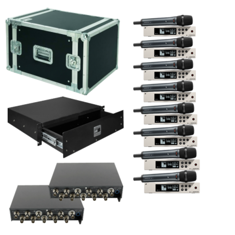 Deze Sennheiser achtvoudige draadloze microfoonset is direct aan te sluiten op uw huidige geluidset. U koppelt eenvoudig met signaalkabel de ontvangers aan op de bestaande mengtafel. Op het aansluitpaneel van de flightcase zijn twee XLR-aansluitingen te vinden voor het doorkoppelen van het microfoonsignaal. De 230V-aansluiting wordt via een powerconconnectie en een bijgeleverde kabel aangesloten op het lichtnet. Tevens kunnen de microfoons worden opgeborgen in de aanwezige 19 inch lade.
