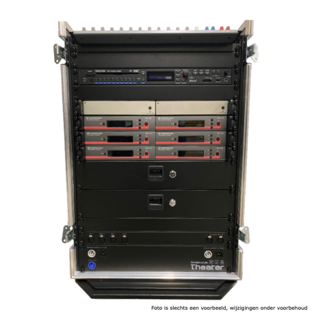 The Stage Managers professionele basis geluidset is voorzien van flightcase, Allen& Heath mengpaneel, twee draadloze microfoons, CD/USB/Bluetooth-speler en een Blu Ray-speler. Er wordt een aansluiting in de set gemaakt, waarbij de Blu Ray-speler direct kan worden aangesloten op een beamer of LCD-scherm. Tegen een meerprijs kunnen de Sennheiser handheldmicrofoons worden uitgevoerd in headsets.